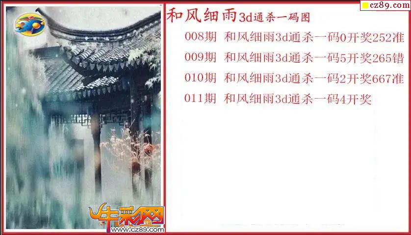 26年011期3d 和风细雨通杀一码图